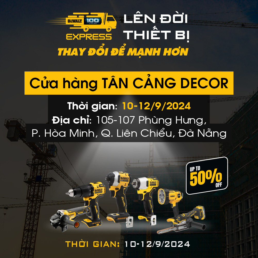 🎉 Sự kiện LÊN ĐỜI THIẾT BỊ – DEWALT 𝗥𝗘𝗙𝗥𝗘𝗦𝗛: 🕒 Thời gian : 𝟏𝟎-𝟏𝟐/𝟎𝟗/𝟐𝟎𝟐𝟒 📍 𝗧𝗔̂𝗡 𝗖𝗔̉𝗡𝗚 𝗗𝗘𝗖𝗢𝗥 👉 Địa chỉ : 105 -107...