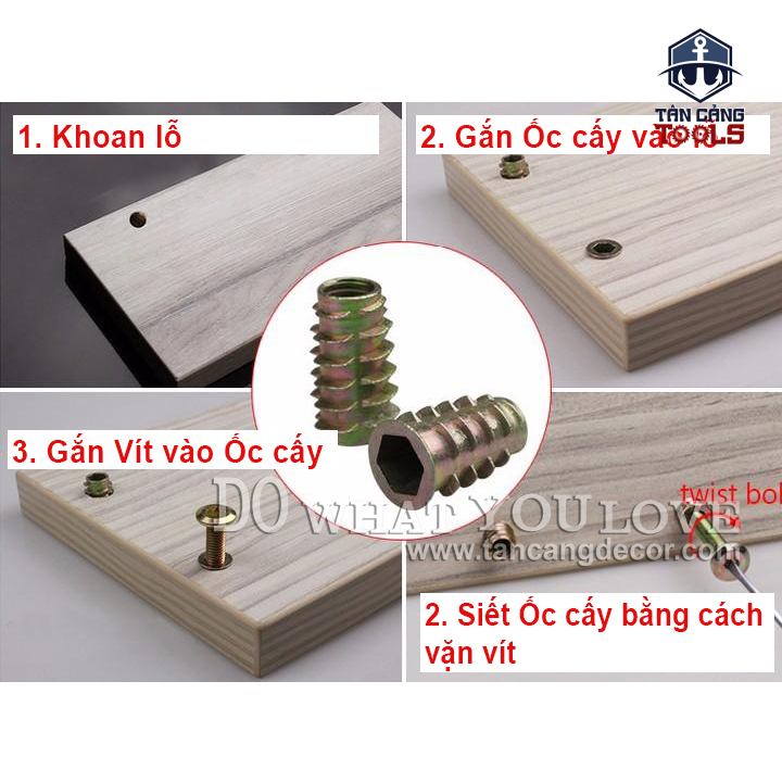 - Sản phẩm được ứng dụng trong ngành gỗ để liên kết chi tiết, cấy vặn bulong hoặc các nút chân tăng chỉnh.