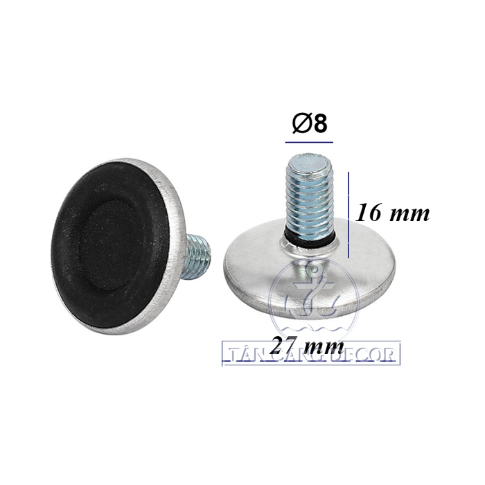 Số lượng : 50 con / 1 Túi Sản phẩm làm được đúc ép từ nhựa dẻo đen kết hợp tán thép trắng.Chốt M8 có tác dụng làm chân tăng chỉnh, chân cân bằng hỗ trợ cho các sản phẩm chân ghế, chân bàn tủ. Giảm tránh ma sát xuống nền nhà sử dụng, bảo quản vật liệu gỗ, vật liệu sàn, tạo khoảng cách nhằm tránh sản phẩm tiếp xúc với nước, chống ăn mòn, tăng tuổi thọ thành phẩm.