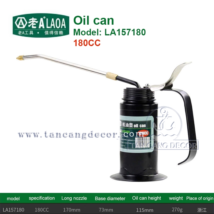 THÔNG TIN SẢN PHẨM: Xuất Xứ : Trung Quốc Thương Hiệu :LAOA. Mã Hiệu : LA157180 Chất Liệu : Thân vòi làm từ chất liệu sắt cao cấp được sơn tĩnh điện, chống gỉ sét Kích Thước : 170 x 73 x 115 mm Trọng Lượng : 270 Gram Dung Tích Chứa : 180 CC / ML. Bộ sản phẩm bao gồm : bình xịt và vòi xịt nối dài ( Sản phẩm được đóng hộp Chính Hãng )