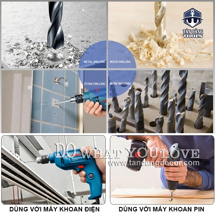 + 5 Mũi Khoan Gỗ : 4 -5 – 6 – 8 – 10 mm.