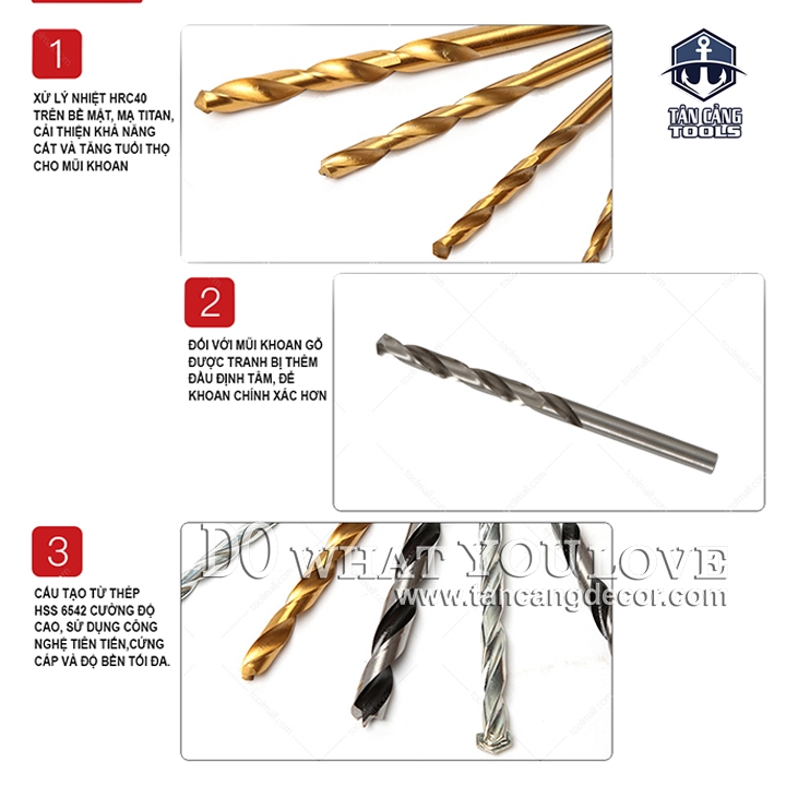 Chất Liệu : Hợp kim thép HSS 6542 cao cấp, tay cầm cán nhựa mềm.