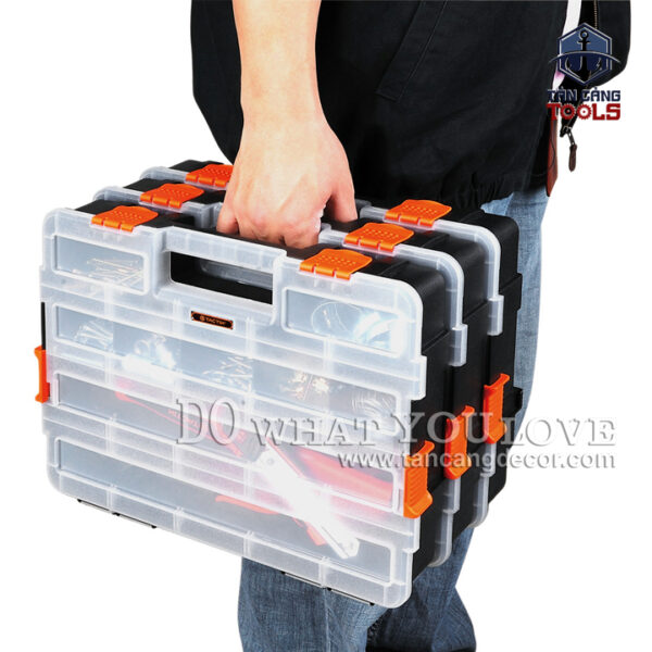 - Các ngăn có thể thay đổi ,được thiết kế chính xác và khoa học, dễ dàng tìm kiếm linh kiện, ốc vít..Các ngăn được thiết kế sẵn rãnh và tấm gài chia đôi giúp phân loại dễ dàng.