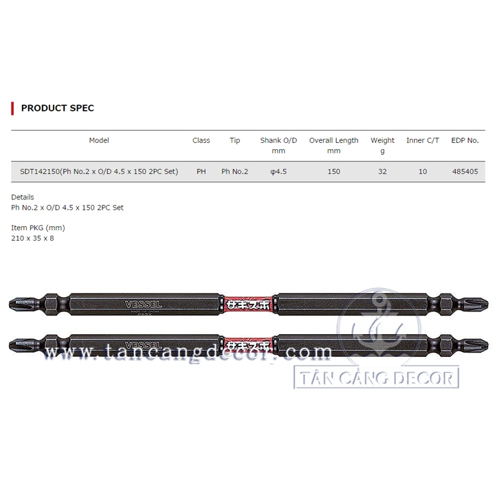 Bộ 2 Mũi Bắt Vít VESSEL PH2 150mm SDT142150