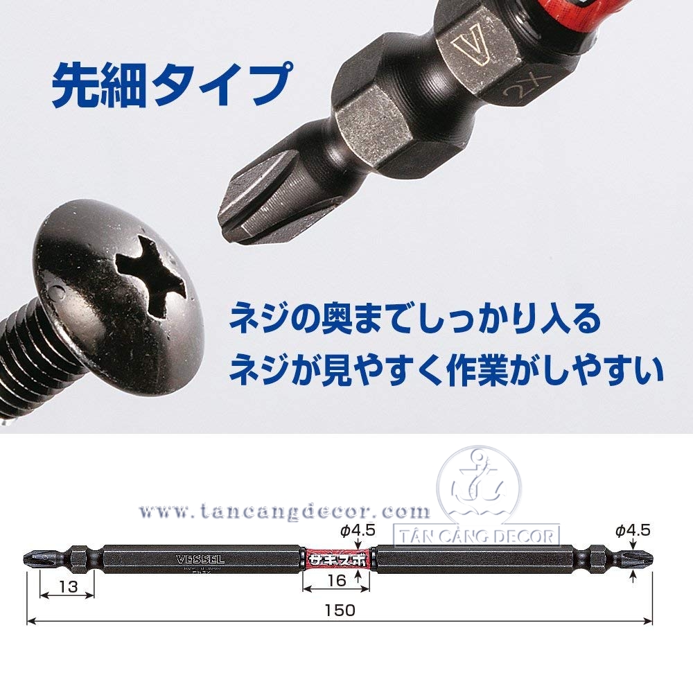 – Bộ 2 Mũi Bắt Vít VESSEL PH2 150mm được ứng dụng công nghệ thép HRC cho độ bền gấp nhìu lần so với mũi thông thường.