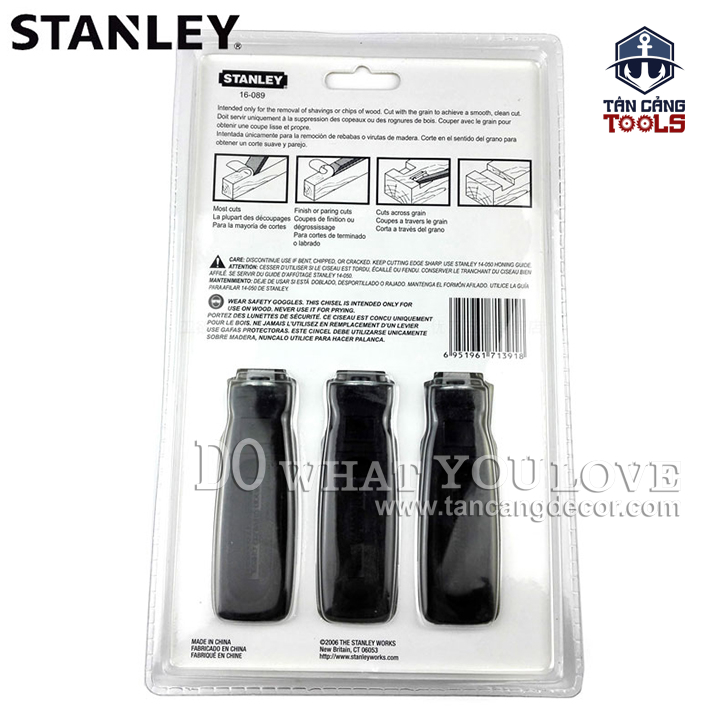 THÔNG TIN SẢN PHẨM: Xuất Xứ : Trung Quốc. Thương Hiệu : STANLEY – HÀNG CHÍNH HÃNG Mã Hiệu : 16-089 Chất Liệu : Phần lưỡi đục được làm từ hợp kim thép có độ cứng cao – Tay cầm bằng nhựa cứng tổng hợp. Kích Thước Lưỡi : 13 – 19 – 25 mm. Đơn giá bán 1 Bộ Gồm 3 Chi Tiết. Ngoài Ra, Còn Có Các Cỡ Khác Như : 6 – 10 – 12 – 16 – 22 – 25 – 32 mm .Bạn Có Thể Tìm Thêm Trên Tân Cảng Decor ^^