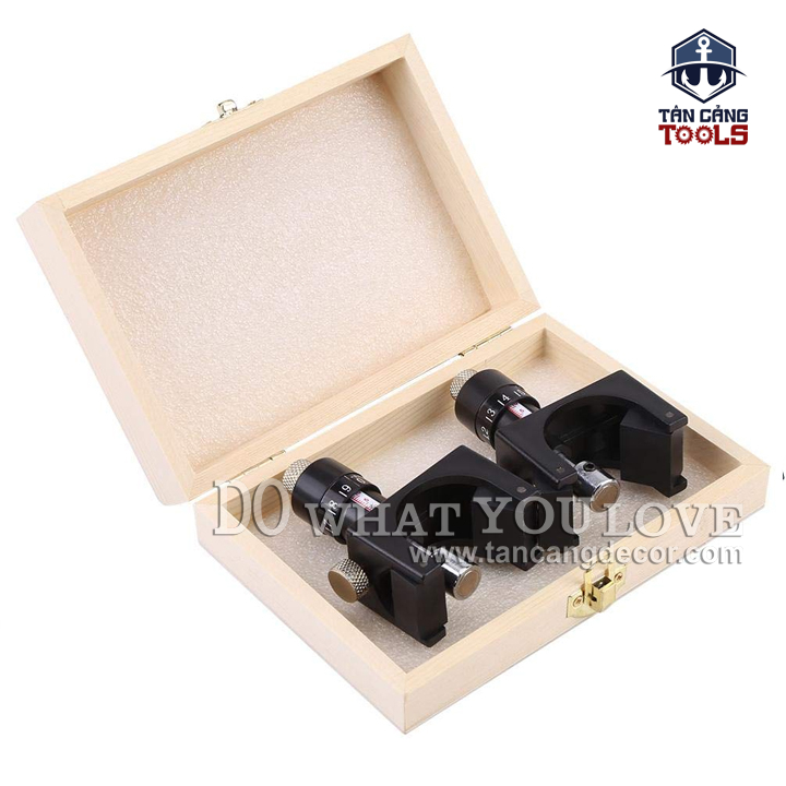 Bước 1: Điều chỉnh độ cao thấp của lưỡi bào bằng số đo trên núm điều chỉnh sao cho cả 2 cữ lắp đều có khoảng cách bằng nhau