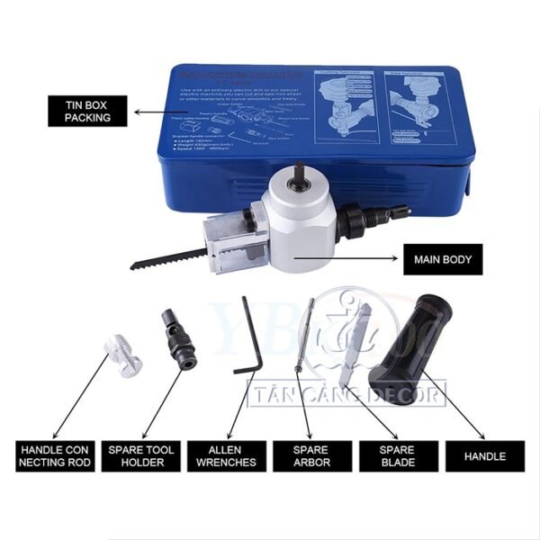 - Tiện lợi và nhanh gọn chỉ với khoan tay và bộ dụng cụ này bạn có thể cắt tôn, lắp lưỡi cưa lọng gỗ hay thậm chí là cắt sắt mỏng (tốc độ: từ 1500 đến 3000 vòng / phút).