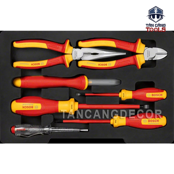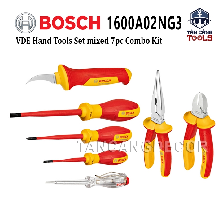 - Bộ Đồ Nghề Đa Năng 7 Chi Tiết Cách Điện 1000V Bosch 1600A02NG3 với đầy đủ các tính năng để bạn có thể sửa chữa điện dân dụng.