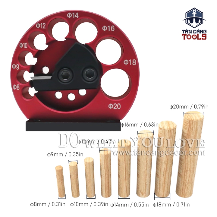 - Bộ Dụng Cụ Chuốt Gỗ Tròn 8/9/10/12/14/16/18/20 mm ( Mẫu Tròn ) được gia công từ nhôm cứng tổng hợp cho độ bền cao.