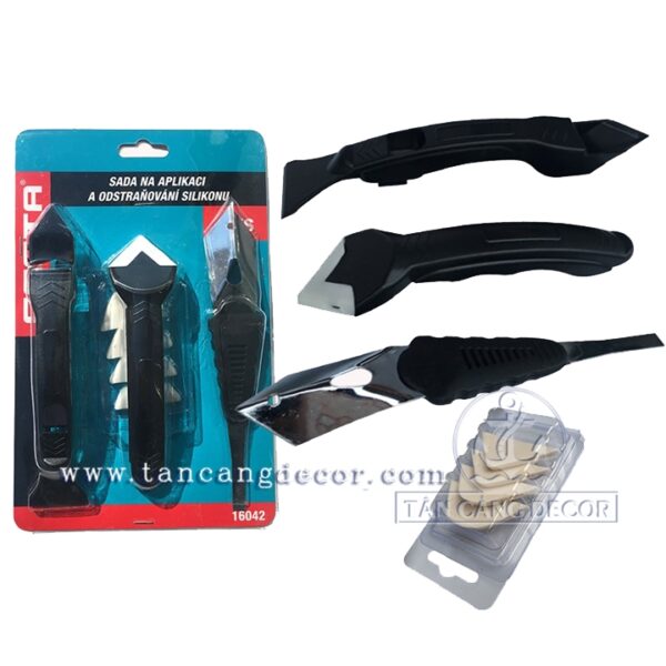 - Sử dụng “Bộ dụng cụ Xử lí Silicone 3in1” sẽ tiết kiệm một nửa thời gian để làm sạch loại bỏ keo silicon cũ – khô cứng…