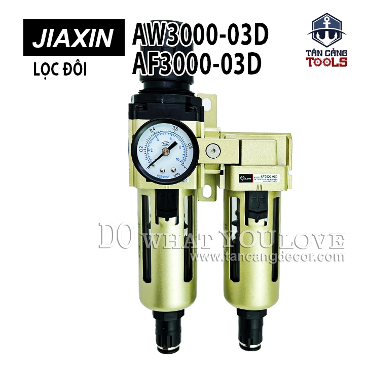 - Bộ Lọc Nước Đôi Dành Cho Máy Nén Khí Jiaxin AW3000-03D Và AF3000-03D ( Xả Nước Tự Động ) có chức năng điều chỉnh áp suất khí nén và lọc tách giúp loại bỏ được các chất bẩn trong hệ thống khí nén.