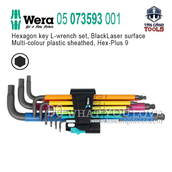 - Bộ Lục Giác 9 Chi Tiết Wera 05 073593 001 với thiết kế chữ L phổ biến, tiện dụng và dễ cầm nắm.