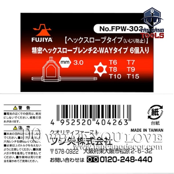 - Bộ Lục Giác Chính Xác 6 Chi Tiết Fujiya FPW-303 với kiểu đầu lục giác khác nhau giúp cho công việc sửa chữa lắp đặt máy móc của bạn trở nên dễ dàng hơn rất nhiều, đảm bảo mở được tất cả các linh kiện.