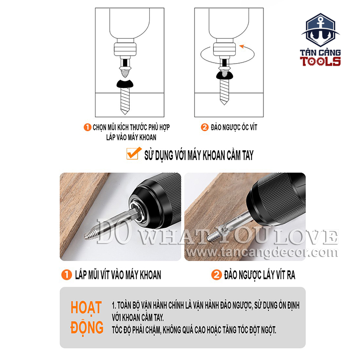 Đối với những đầu vít, bulong nhỏ có thể sử dụng đầu vặn 2 chi tiết.