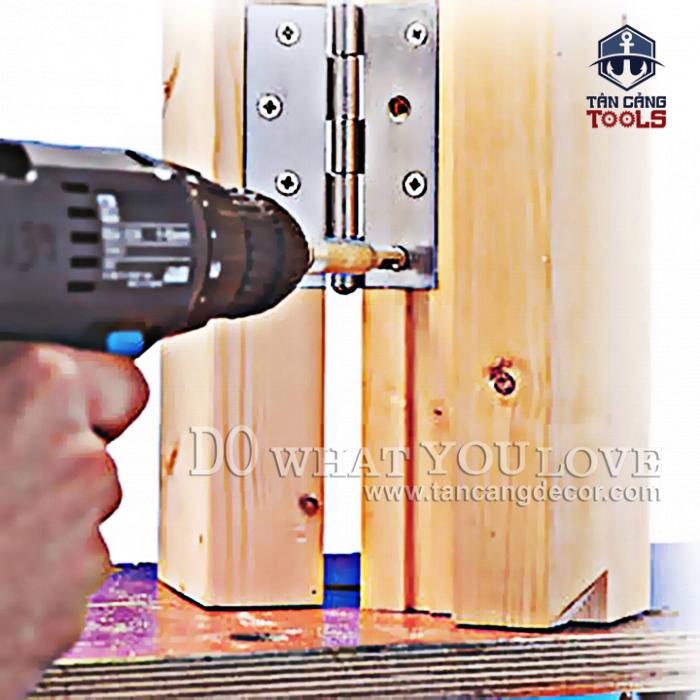 - Công cụ khoan chuyên nghiệp hỗ trợ việc lắp đặt bản lề cửa, bất cứ lúc nào mà bạn cần đặt lỗ chính xác.