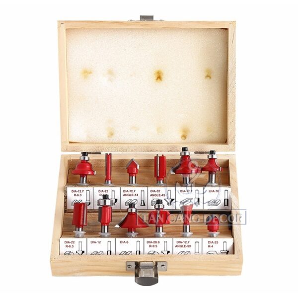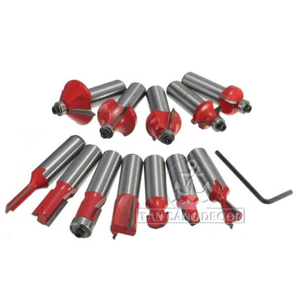 Bộ mũi phay gỗ 12 món chuyên dùng cho máy phay cầm tay hoặc máy bàn router.
