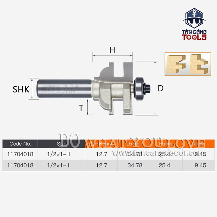 Mũi Router Arden Ghép Tủ Bếp 25.4 mm Cốt 12.7 mm Arden 1704 Set ( Mẫu 3 )