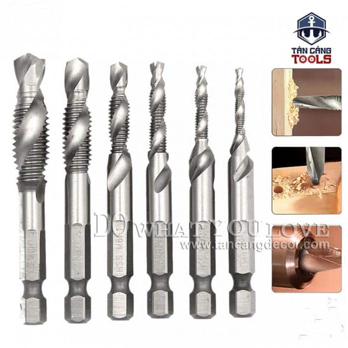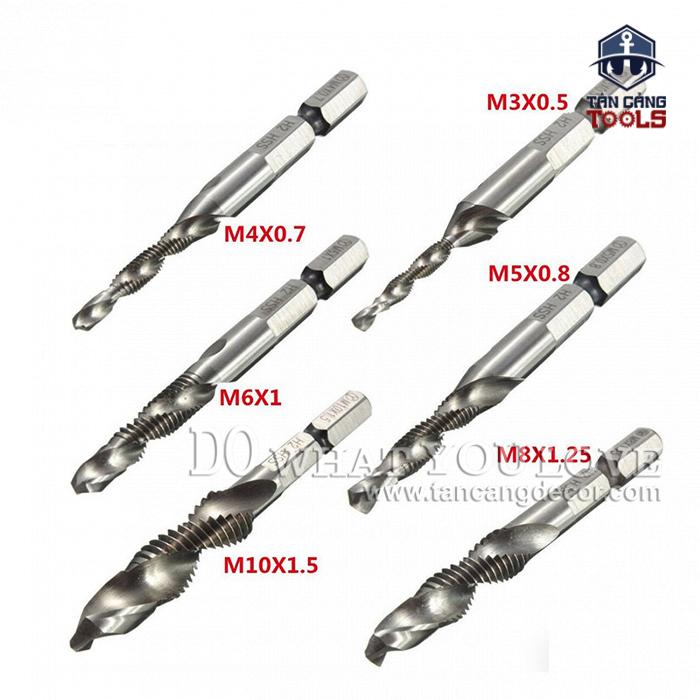 - Bộ 6 mũi taro ren gồm các cỡ ren: M3 – M4 – M5 – M6 – M8 – M10