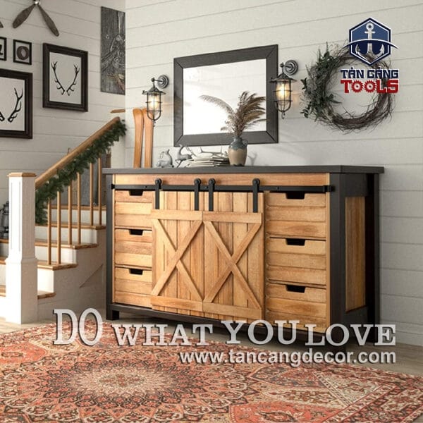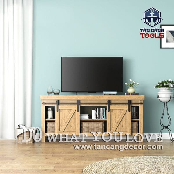 Bộ phụ kiện chưa bao gồm ray dẫn hướng ( Có thể đặt theo yêu cầu tại Shop Tân Cảng Decor tùy vào bề rộng cửa hoặc Bạn có thể đặt mua dễ dàng ngoài tiệm sắt, yêu cầu độ dày 5mm -6mm).