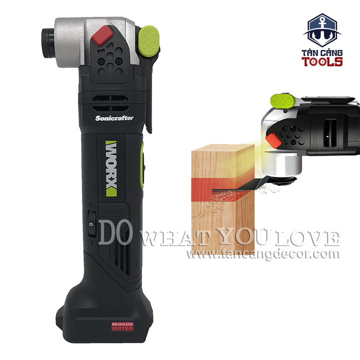 Body Máy Cắt Rung Đa Năng Dùng Pin 20V Worx WU690.9 được thiết kế để cưa và cắt các nguyên vật liệu bằng gỗ, nhựa, thạch cao, kim loại màu p như : đinh, ghim dập chưa hết. Máy cũng thích hợp để làm việc với gạch ốp lát tường mềm, cũng như sử dụng để chà khô và cạo bề mặt nhỏ. Máy đặc biệt thích hợp để gia công các vị trí cạnh biên và cắt bằng mặt.