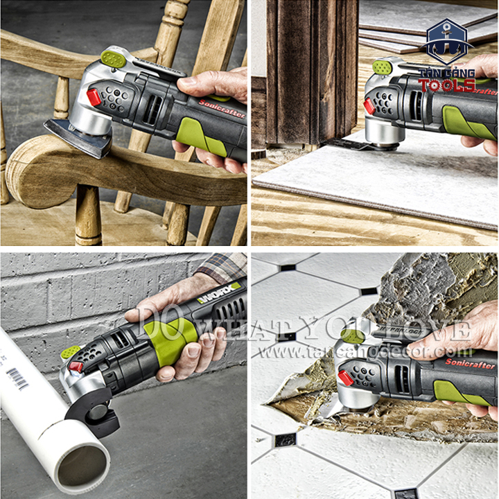 Với công suất mạnh mẽ Máy Cắt Rung Đa Năng Dùng Pin 20V Worx WU690.9có thể cắt được nhiều chất liệu khác nhau như gạch, đá, kim loại, kể cả vải, thảm bông dày… Ngoài ra, chỉ cần 1 thao tác thay đĩa đơn giản, công dụng của máy sẽ không chỉ dừng lại ở việc cắt mà còn có thể chà, cạo các bề mặt kim loại, sơn hoặc gỗ.