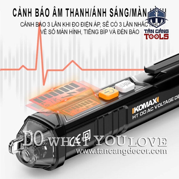 - Bút Thử Điện Không Chạm Điện Tử 12V Đến 1000V Komax KMS-1 là công cụ đo điện áp thông thường được sử dụng để kiểm tra tính hoạt động và đo điện áp trong các mạch điện.
