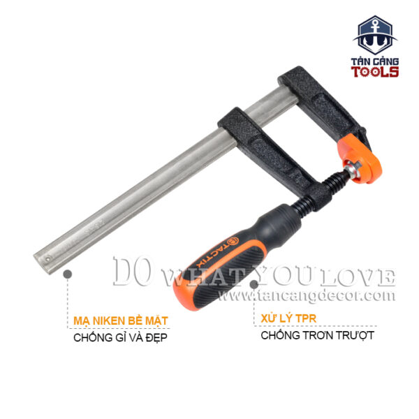 - Sản phẩm chuyên dùng để cố định tạm thời vật hoặc phôi, chi tiết cần gia công. Sản phẩm có đặc điểm nổi trội chắc chắn, bền với thời gian. Được sử dụng rộng rãi ở nhiều lĩnh vực khác nhau như mộc, hàn, xây dựng, gia công kim loại, cơ khí.