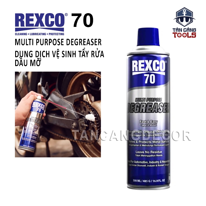 - Chai Dung Dịch Tẩy Rửa Dầu Mỡ Đa Năng 500ML Rexco 70 MULTI PURPOSE DEGREASER là một sản phẩm chất lượng cao giúp loại bỏ dầu, bụi bẩn và mỡ một cách nhanh chóng và hiệu quả.