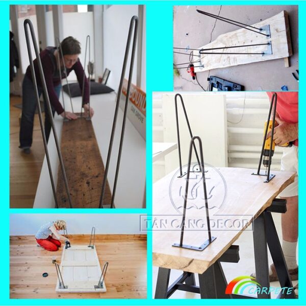 - Những chiếc chân bàn hairpin leg được làm bằng sắt phi 12 mm. Nếu bạn đang tự làm một cái bàn thì chúng cũng là một lựa chọn hoàn hảo. Chúng tôi sử dụng sơn phủ tĩnh điện nên rất đảm bảo về kết cấu cũng như độ bền sử dụng.