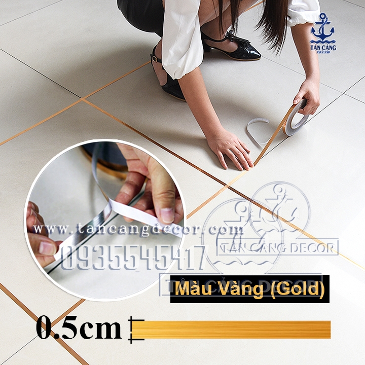 Chỉ Dán Viền Gạch Tường Trang Trí Bản 0.5 Cm Màu Vàng