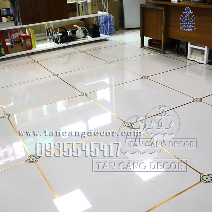 - Có thể dán trên sàn nhà nhưng ở những nơi ít đi lại và dán khóa góc để tránh bong mí ngoài cùng.