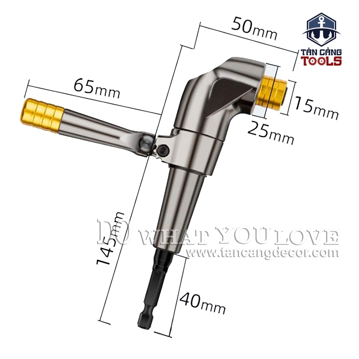 - Bộ Chuyển Hướng Mũi Khoan-Bắt Vít 90 ° giúp bạn có thể vặn vít bằng máy bắt vít, máy khoan ở những vị trí ngóc ngách khó đưa máy hoặc tô vít vào để vặn. Bạn chỉ cần lắp mũi tuốc nơ vít, mũi khoan là đã có thể hóa giải những góc vặn khó khăn mà hướng vặn thẳng không làm được.