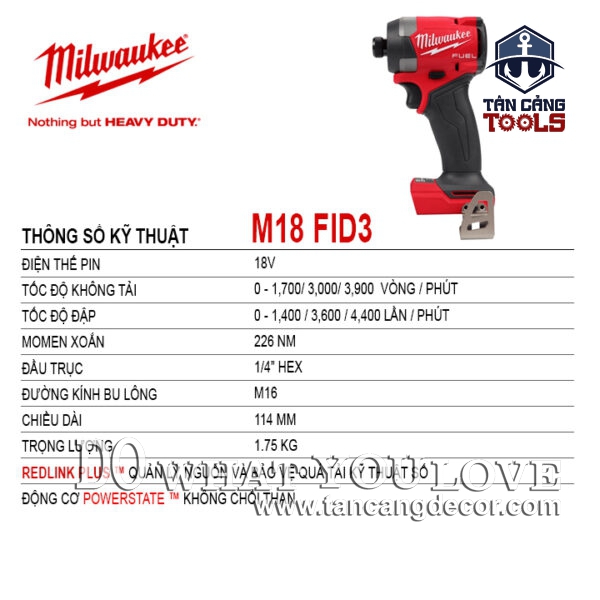 - Combo FID3 + FPD3 Milwaukee M18 FPP2A3 Phiên Bản Mới sử dụng công nghệ pin độc quyền MILWAUKEE ‘FUEL’ chuyên nghiệp mang lại hiệu suất tối đa với sức sức mạnh vượt trội bên trong một kết cấu nhỏ gọn.