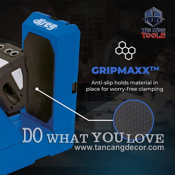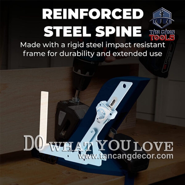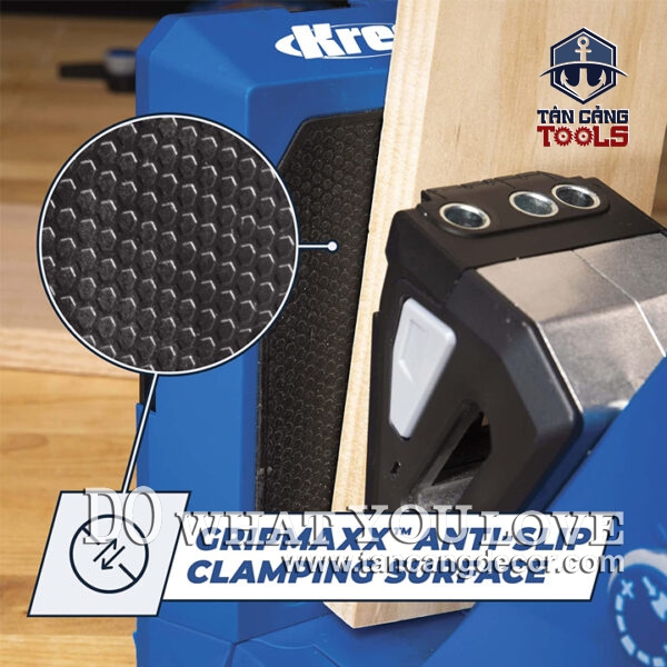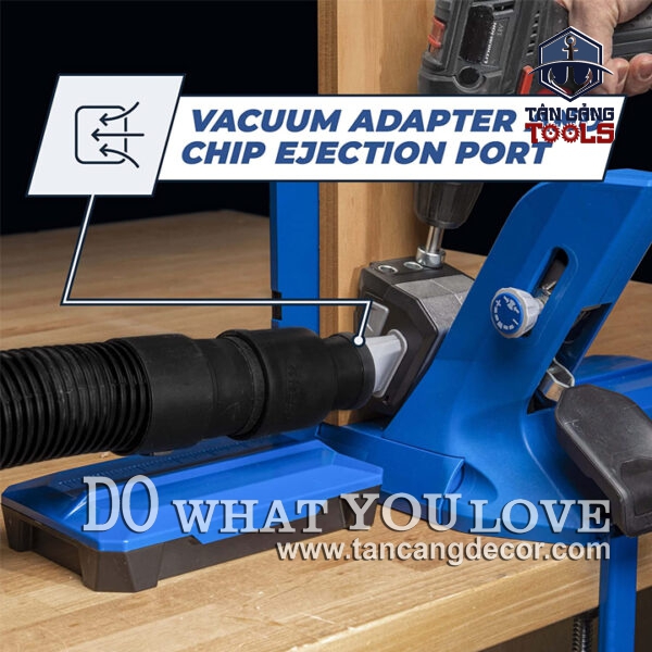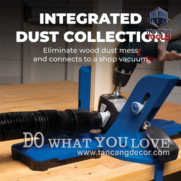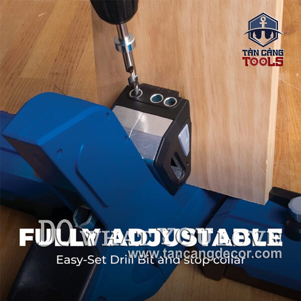 - + Với thiết kế thanh trượt định vị kép giúp bạn đặt đúng khuôn dựa trên độ dày của vật liệu bạn đang làm việc. Đơn giản chỉ cần ấn nút ở phía bên của khuôn và di chuyển các thanh trượt để độ dày vật liệu của bạn được căn chỉnh với mũi tên trên thân khuôn sao cho mũi khoan nằm giữa tim ván.