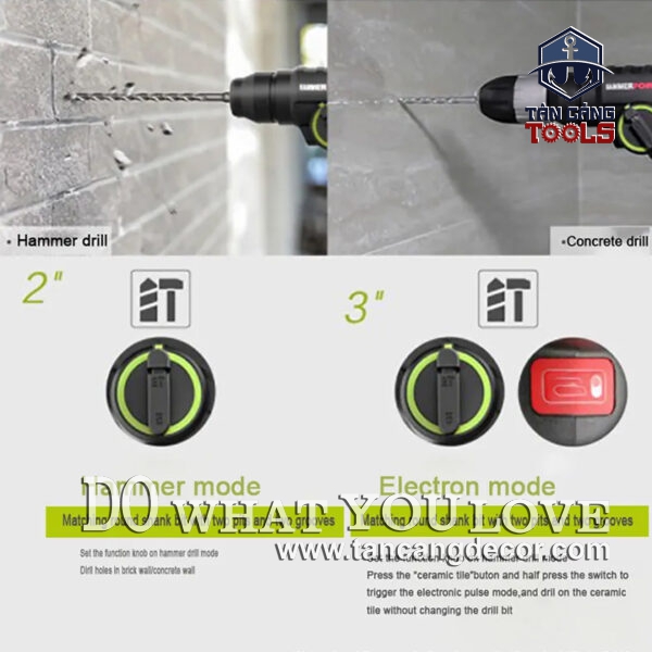 - Công dụng kép: khoan thường, khoan búa.