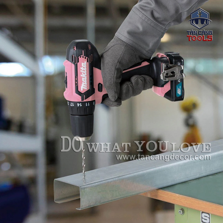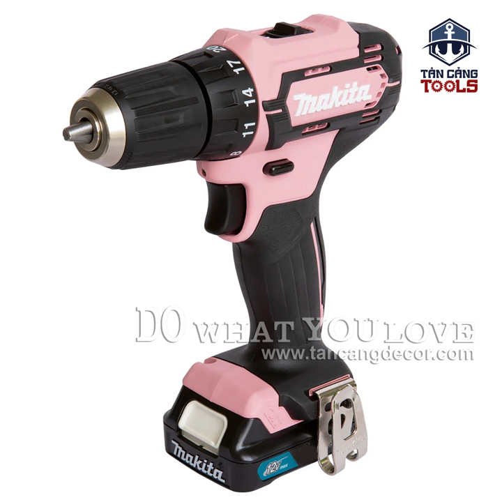 THÔNG TIN SẢN PHẨM: Xuất Xứ : Trung Quốc. Thương Hiệu : MAKITA – HÀNG CHÍNH HÃNG Mã Hiệu : DF333DSAP1 Dòng sản phẩm : PINK EDITION – Limited Edition Chất Liệu : Thân máy cấu tạo nhựa ABS tăng độ bền cho máy, cách điện kép. Trọng Lượng : 1.2 Kg – Sử Dụng Động Cơ Có Chổi Than. – Điện Thế Pin : 12V – Tốc Độ Không Tải : 0 -450 / 1.700 Vòng / Phút. – Lực Vặn Tối Đa : 30 Nm. – Lực Vặn Tối Thiểu : 14 Nm. Đầu Kẹp Kim Loại 13 mm. Kích Thước : 179 mm. Có 20 Cấp Trượt Bắt Vít , Khoan Thường. Có Đèn Led. Khả Năng Khoan : + Gỗ : 21 mm + Kim Loại : 10 mm BỘ SẢN PHẨM BAO GỒM : + Túi Vải + Thân Máy + Móc Gài. + Pin 12V 2.0Ah + Sạc Nhanh Sản Phẩm Bảo Hành 6 Tháng. Phiên Bản Giới Hạn.