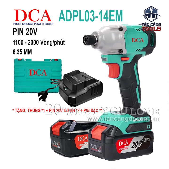 Combo Máy Vặn Vít Dùng Pin DCA 20V ADPL03-14EM ( Thân Máy, 2 Pin 4.0Ah + Sạc Pin + Thùng Nhựa )