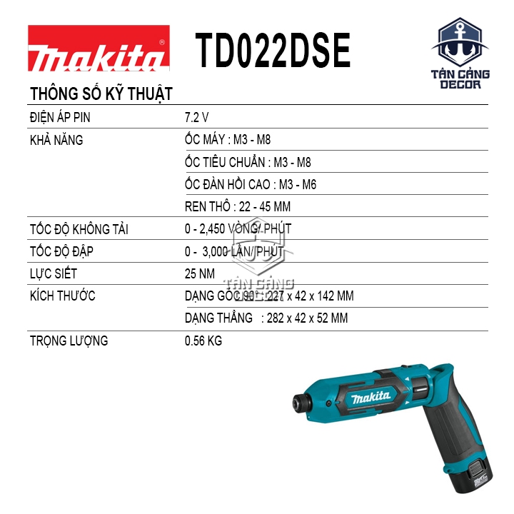 Combo Máy Vặn Vít Gập Dùng Pin Makita TD022DSE (2 pin + 1 sạc)