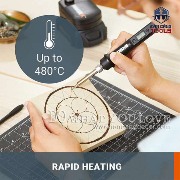 - Mỏ Hàn Điều Chỉnh Nhiệt Độ Dùng Pin 20 V Worx WX744.9 là một phần của nền tảng pin chia sẻ năng lượng WORX 20V, cho phép bạn chia sẻ pin li-ion 20V Max với các công cụ DIY & Garden khác của WORX.