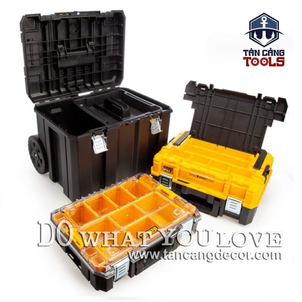 - Combo Thùng Đựng Dụng Cụ DeWalt DWST83411 Có Xe Kéo với thiết kế đặc trưng với tông vàng đen của DeWalt.Chất liệu nhựa chịu lực cho độ bền lâu dài.