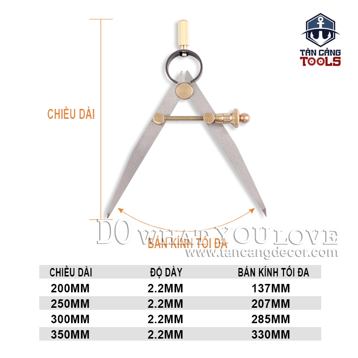 • Compa Cơ Khí 350 mm Magato – Bán Kính 330 mm được làm toàn bộ từ thép đặc cho độ ổn định và độ bền cao.