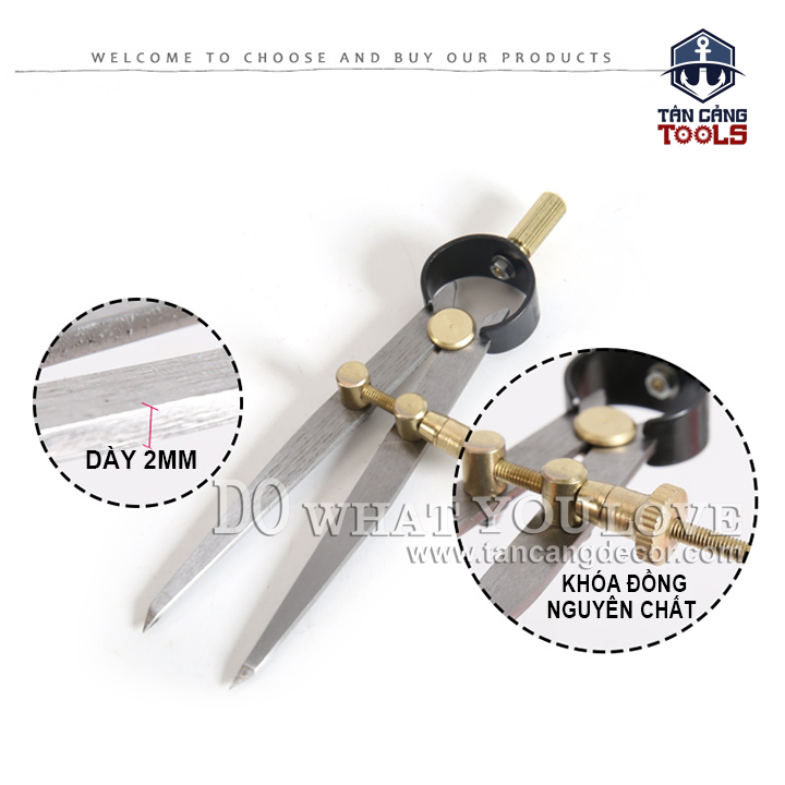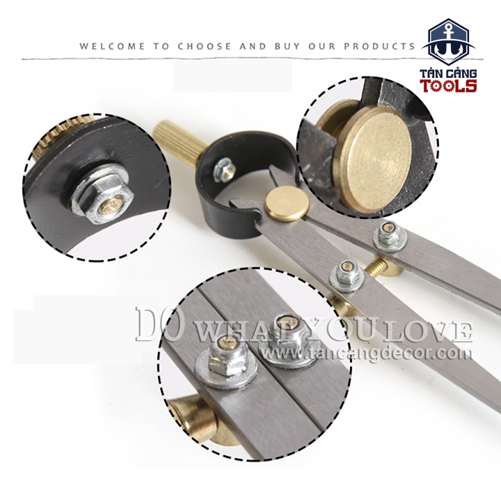 • Chân compa có thiết kế tròn, vát dần về mũi. Mũi nhọn bằng thép hợp kim.