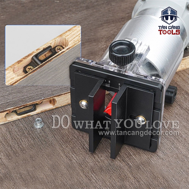 - Sản phẩm chuyên dụng kết hợp máy phay ( router 6.35 mm ) giúp bạn thao tác nhanh móc rãnh giữa hông ván.