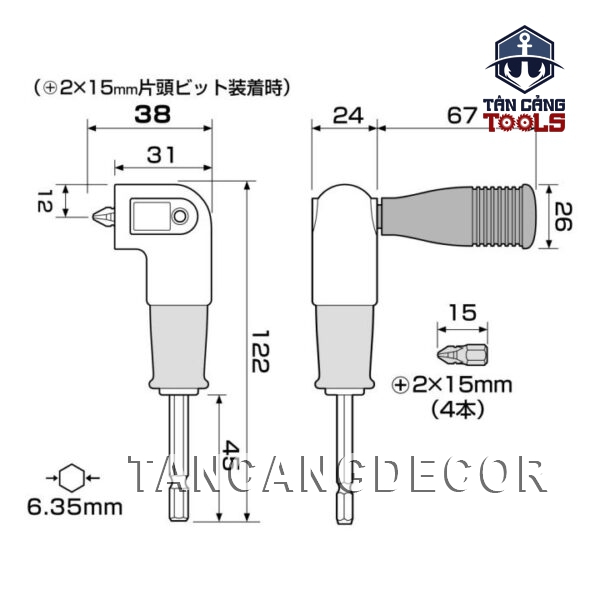 - sẢN PHẨM BAO GỒM : Đầu Chuyển Góc, Tay Cầm, 3 Mũi Vít