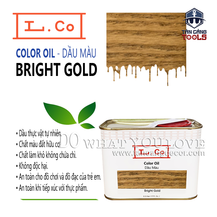 Sơn Lau L.Co Dầu Màu – Màu Bright Gold COLBG – L.Co Color Oil Bright Gold – Dầu thực vật tự nhiên, an toàn cho sức khỏe