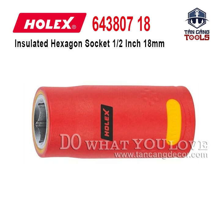 - Đầu Tuýp 1/2 Inches Cách Điện 1000V 18 mm Holex 643807 18 được làm bằng thép cường độ cao, có độ cứng cao, chịu lực tốt, chống mài mòn, chống gỉ sét, chống xoắn.