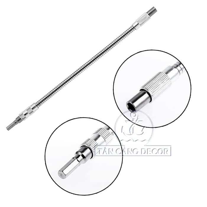 – Dây Bắt Vít Góc 300 mm có thểuốn cong, xoắn và kết hợp với máy khoan, máy bắn vít để sử dụng khoan, vặn vít ở không gian hạn chế mà máy móc không đưa vào đươc.