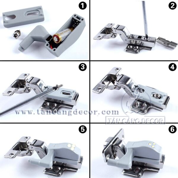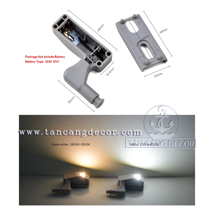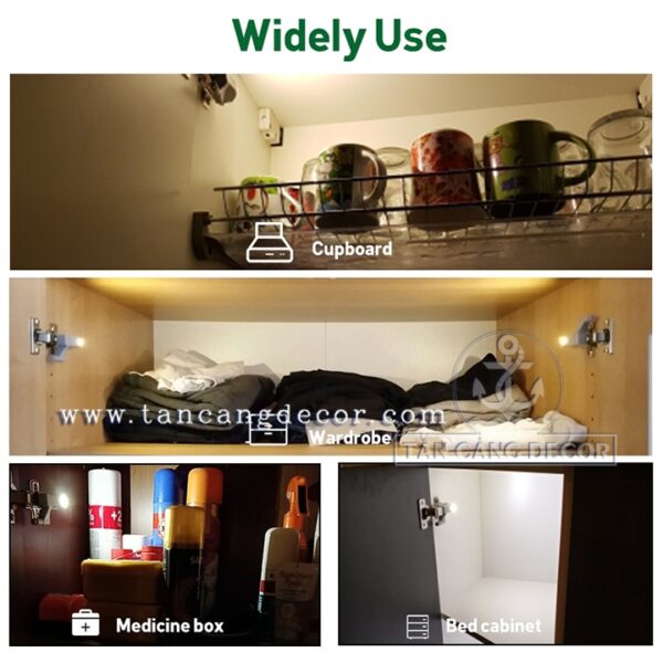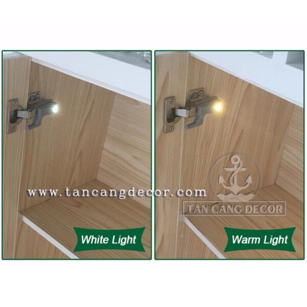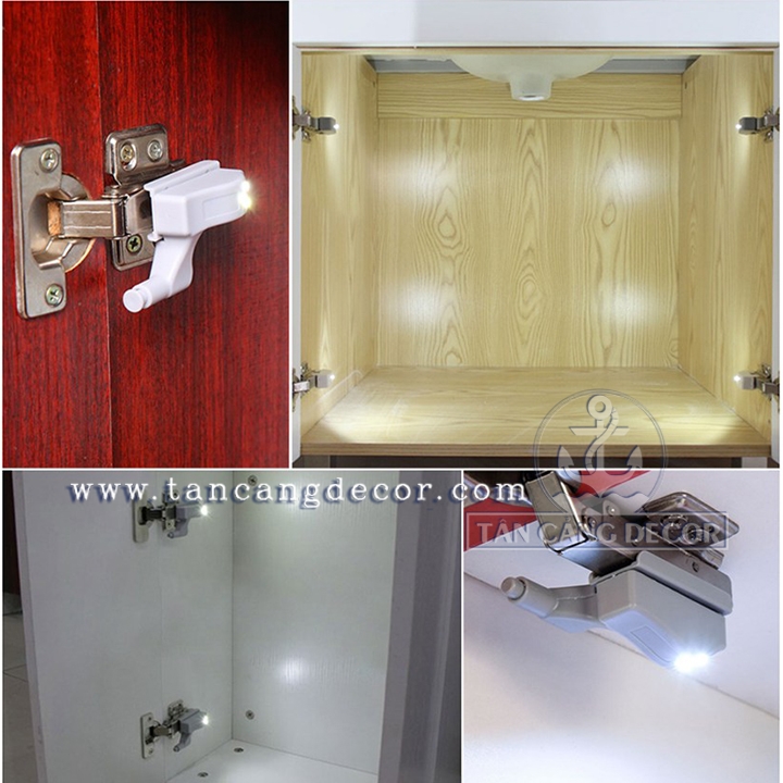 - Đèn led được thiết kế tích hợp để lắp đặt cho hầu hết các loại bản lề trên thị trường. Đèn được ứng dụng gắn vào bản lề sẵn có để chiếu sáng cho các loại tủ áo, tủ giày, tủ bếp, tủ trang trí…..