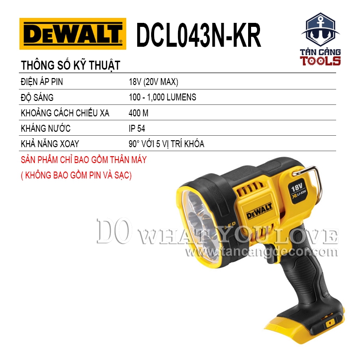 - Đèn Pin Dùng Pin 20V Dewalt DCL043N ( Thân Máy ) là dòng thiết bị hỗ trợ chuyên dụng rất được ưa chuộng và sử dụng rộng rãi bởi người lao động với khả năng thực hiện và đáp ứng rất tốt và phù hợp trong công việc gia đình, đơn vị thi công nội thất trong môi trường thiếu ánh sáng.